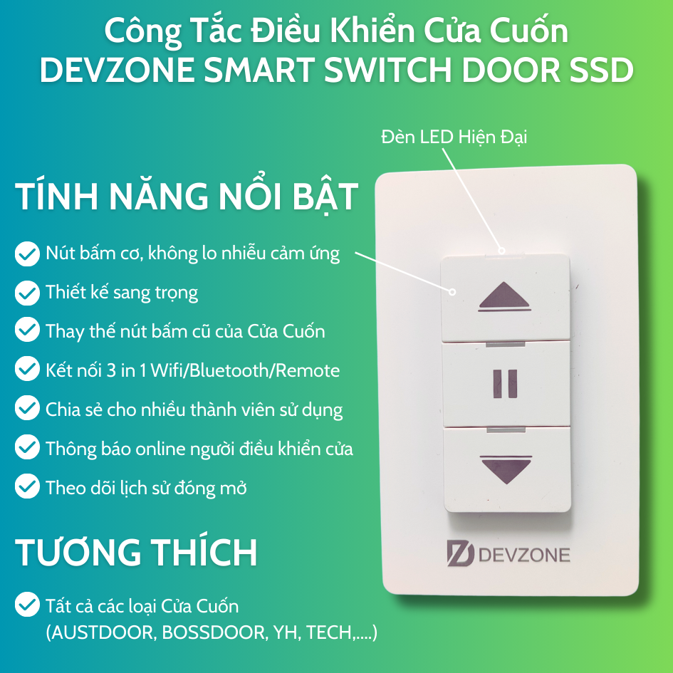Công tắc điều khiển cửa cuốn bằng điện thoại DEVZONE SMART SWITCH DOOR SSD 4 in 1 cao cấp