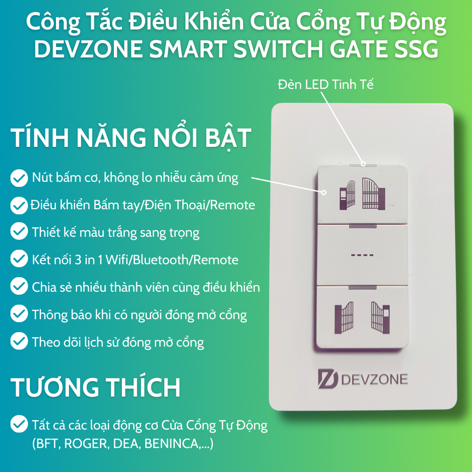 Công Tắc Điều Khiển Đóng Mở Cửa Cổng Tự Động Bằng Điện Thoại DEVZONE SMART SWITCH GATE SSG 4 in 1 Nút Bấm Cơ Gắn Tường Wifi Bluetooth Remote